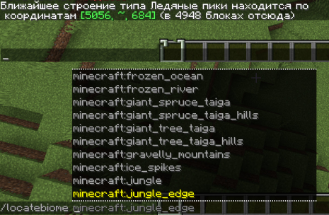 Готово! Вы получаете координаты, по которым без труда можно найти нужный вам биом.